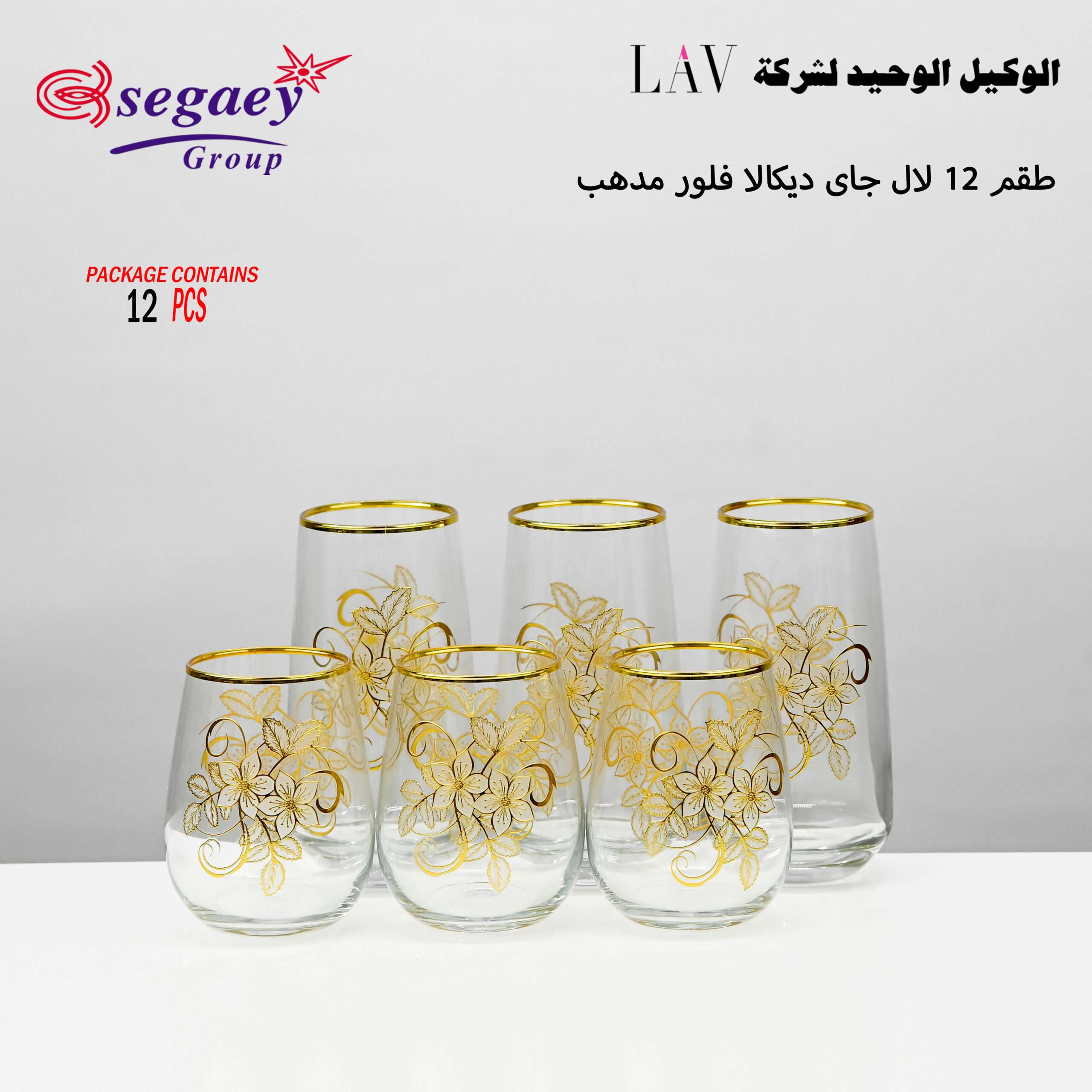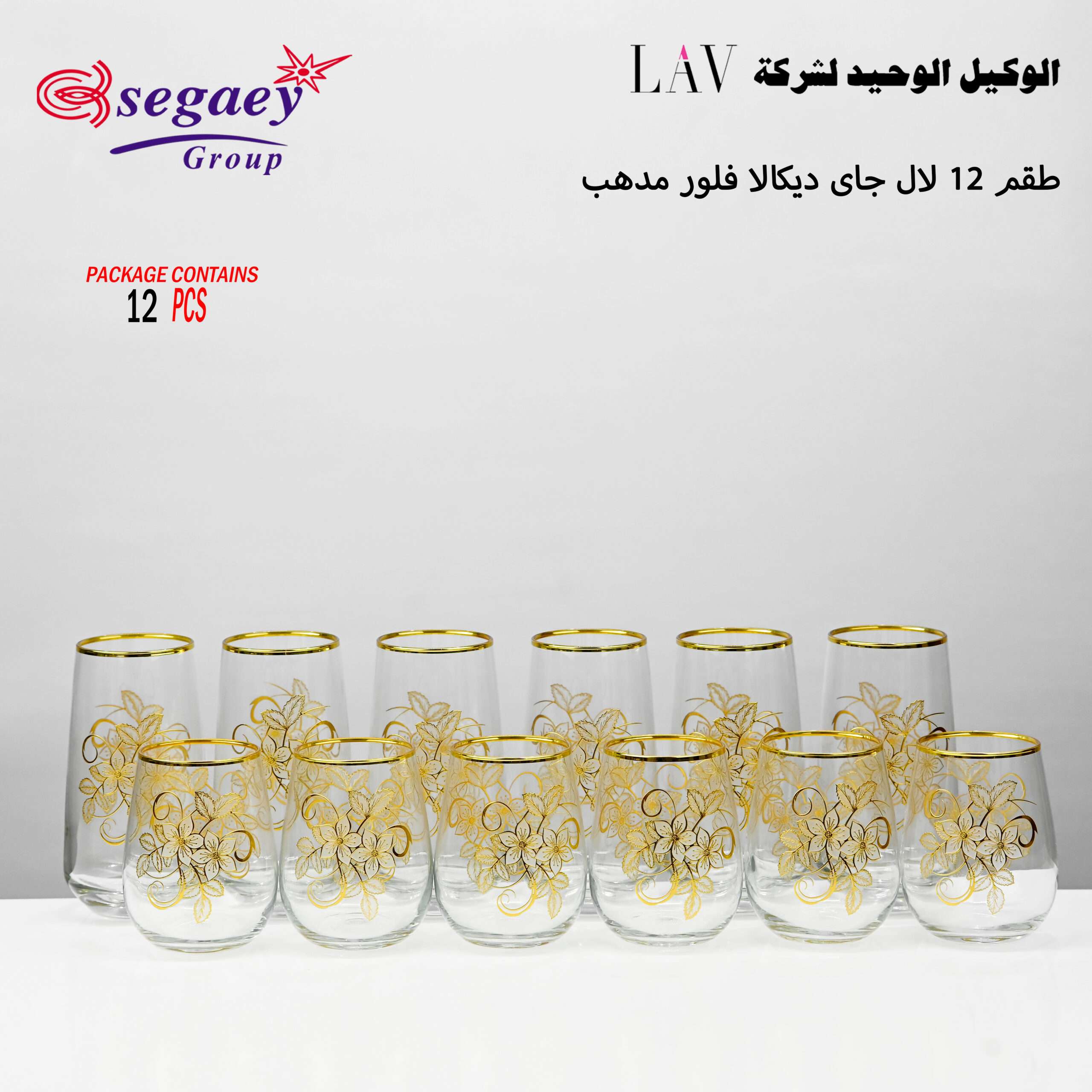 طقم 12 لال جاى ديكالا فلور مدهب