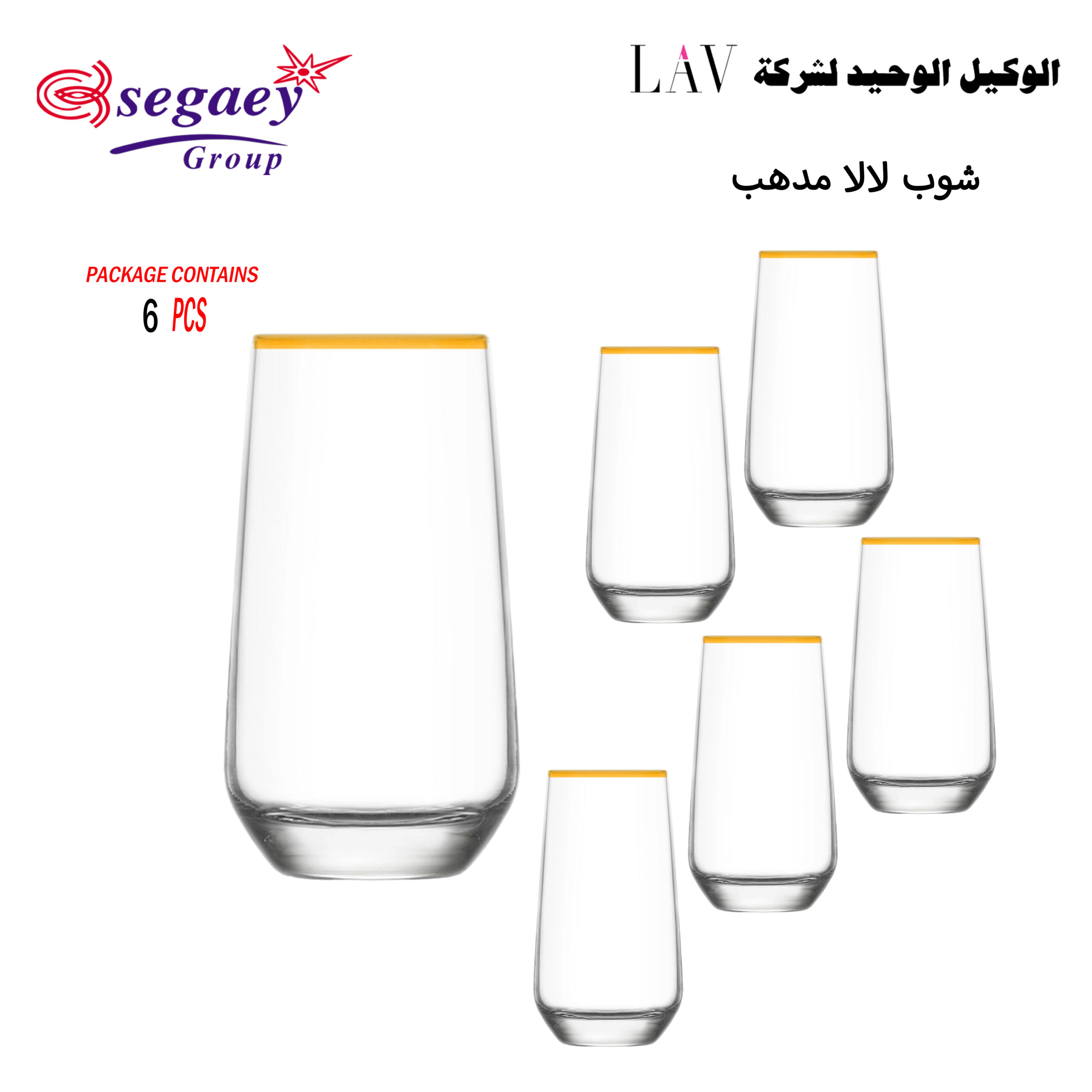 - Segaey LAL Highball Glass / Golden Rim / 6 Pcs / 480 cc – 16.25 Oz / Elegant design, Trusted Brand, Attractive shape of Water, Sparkling Drink , Soft Drink, Juices , Cocktails / High Quality Materials